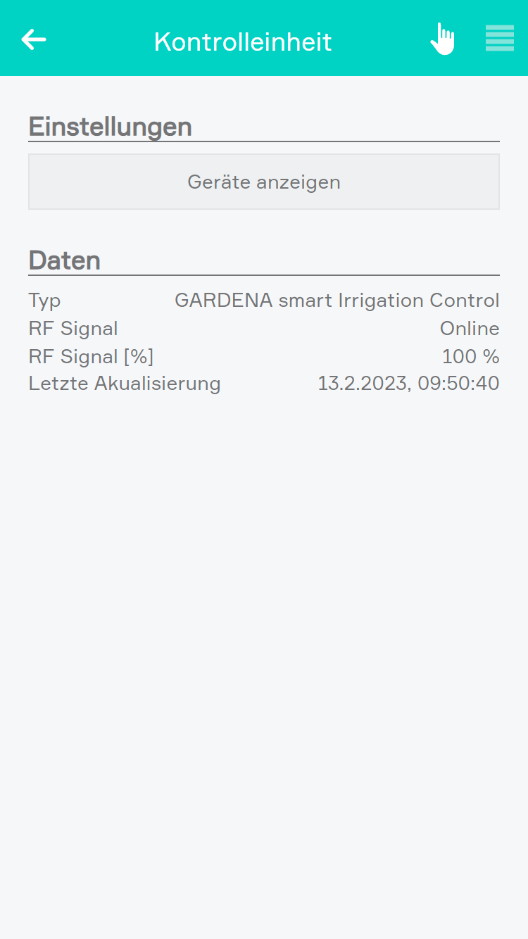 Die Geräte Smart Irrigation Control und Smart Water Control werden unter Einstellungen > Gardena angezeigt.