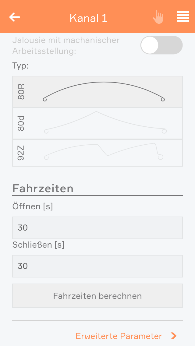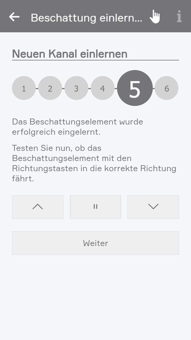 Die Favoritenpositionen können in den Einstellungen der Jalousie konfiguriert werden. Dabei werden Sie durch einen Wizard geführt, welcher Ihnen beim Einlernen unterstützt.