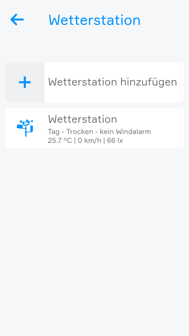 Fügen Sie eine neue Wetterstation hinzu. Wenn Sie alles richtig gemacht haben, wird eine Verbindung aufgebaut und Ihre Wetterdaten werden jede Sekunde aktualisiert.