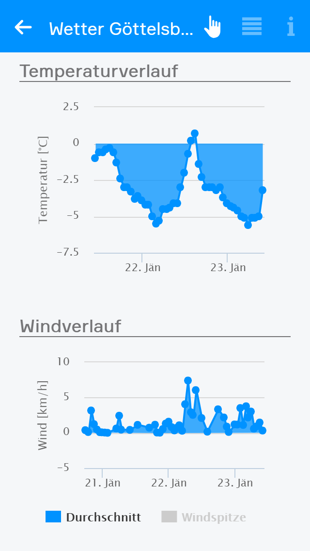 Im Operatorpanel der Wetterstation befinden sich mehrere Statistiken und Charts, über die Sie den Verlauf der gemessenen Werte ablesen können.