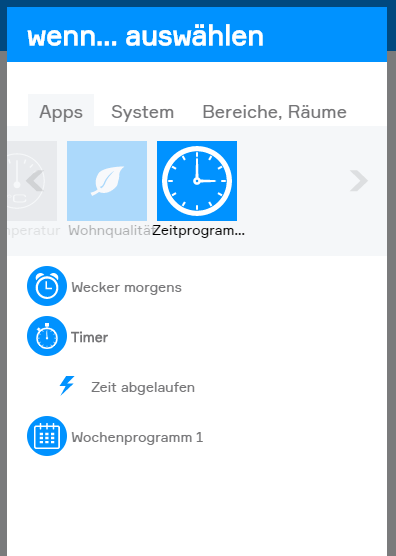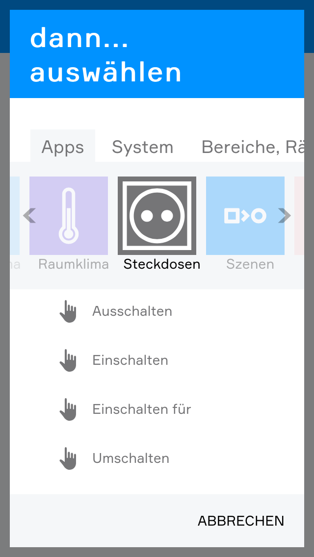Die neue Funktionsauswahl ermöglicht eine noch intuitivere und schnellere Erstellung von Szenen und Automationen.