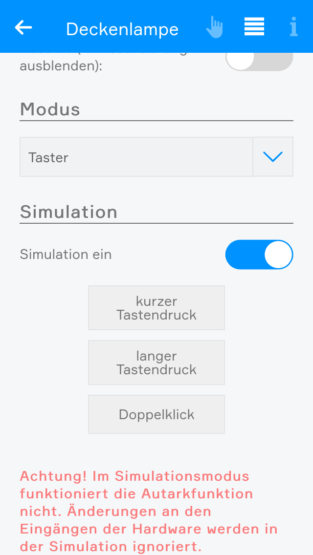 - 1x 2-fach Taster hinter dem Bett für Sonderfunktionen, diese könnten normalerweise über Doppelklick oder langen Tastendruck abgehandelt werden und sind nur in unserem Beispiel, um das evon Smart Home Digitalmodul D1180 zu demonstrieren.