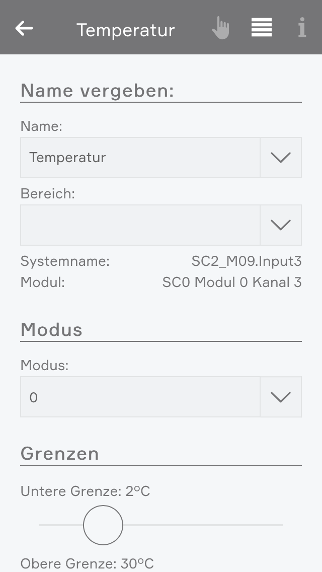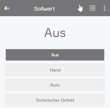 Im Parameter Panel kann für die drei Betriebsmodi eine Solltemperatur gewählt werden. Dabei kann ein Fixwert bestimmt oder ein im System vorhandener Nummernwert verknüpft werden.