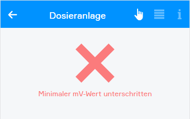 Dieser Fehler wird sofort erkannt, sobald die dynamische Dosierzeitüberwachung des mV-Werts überschritten wurde.