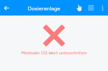 Dieser Fehler sagt aus, dass der minimale ph-Wert an der Dosieranlage unterschritten wurde.