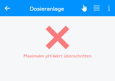 Dieser Fehler wird sofort erkannt, sobald der maximale ph-Wert an der Dosieranlage überschritten wurde.