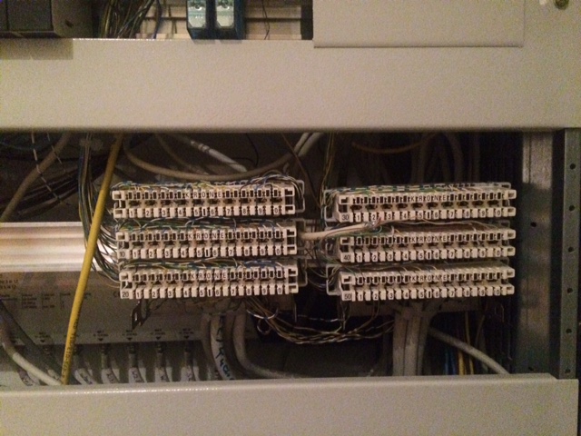 Alle Lichter, Jalousien und sonstige Lasten, sowie alle Schalter, Fensterkontakte und Sensoren werden in den jeweiligen Verteiler geführt. Für die Schalter empfehlen wir die Verwendung von mehradrigen Fernmeldekabeln (F-YAY) bzw. CAT5 Kabeln. Diese werden dann übersichtlich, am besten auf LSA Plus Leisten aufgelegt (siehe Vorlage Rangierleiste).